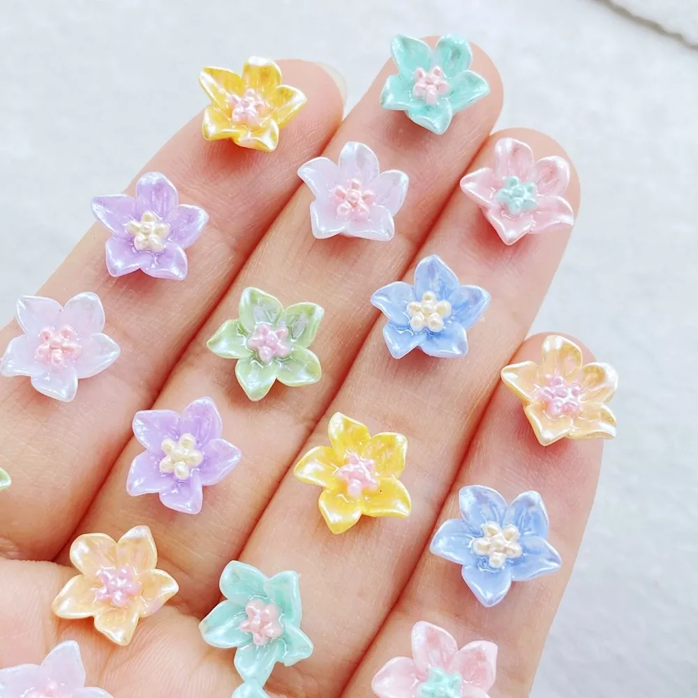 50pcs Mini Colorful Flower Resin Nail Charms for DIY Nail Art & Craft Decoration