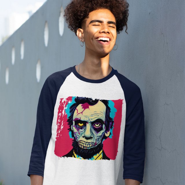 Abraham Lincoln Baseball T-Shirt – Pop Art T-Shirt – Zombie Tee Shirt