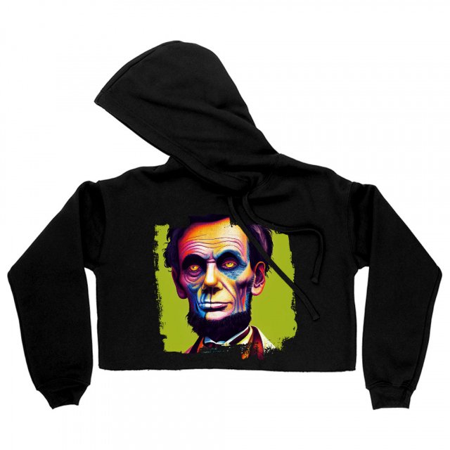 Abraham Lincoln Face Paint Women’s Cropped Fleece Hoodie – Zombie Cropped Hoodie for Women – Pop Art Hooded Sweatshirt