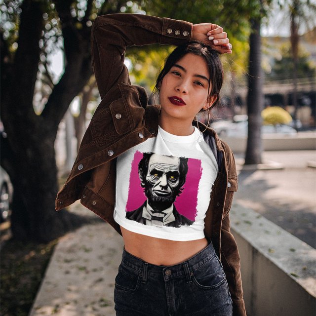 Abraham Lincoln Funny Women’s Cropped T-Shirt – Zombie Crop Top – Portrait Crop Tee Shirt