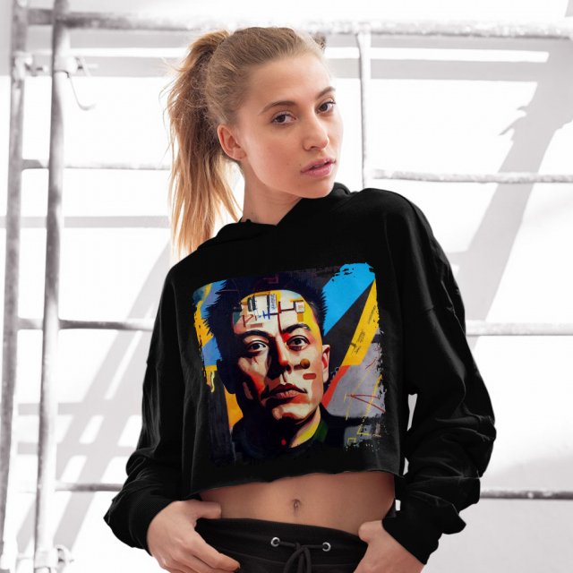 Abstract Art Design Women’s Cropped Fleece Hoodie – Artwork Cropped Hoodie for Women – Graffiti Design Hooded Sweatshirt