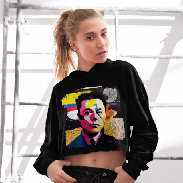 Abstract Colorful Women’s Cropped Fleece Hoodie – Cool Art Cropped Hoodie for Women – Cool Graffiti Hooded Sweatshirt