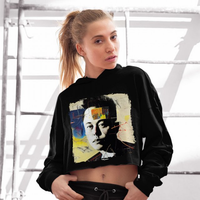 Abstract Graphic Women’s Cropped Fleece Hoodie – Art Cropped Hoodie for Women – Colorful Hooded Sweatshirt