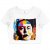 Abstract Print Women’s Cropped T-Shirt – Elon Musk Face Crop Top – Multicolor Crop Tee Shirt