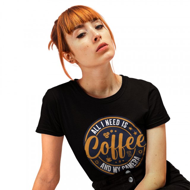 All I Need Is Coffee Heavy Cotton T-Shirt – Camera Tee Shirt – Illustration T-Shirt
