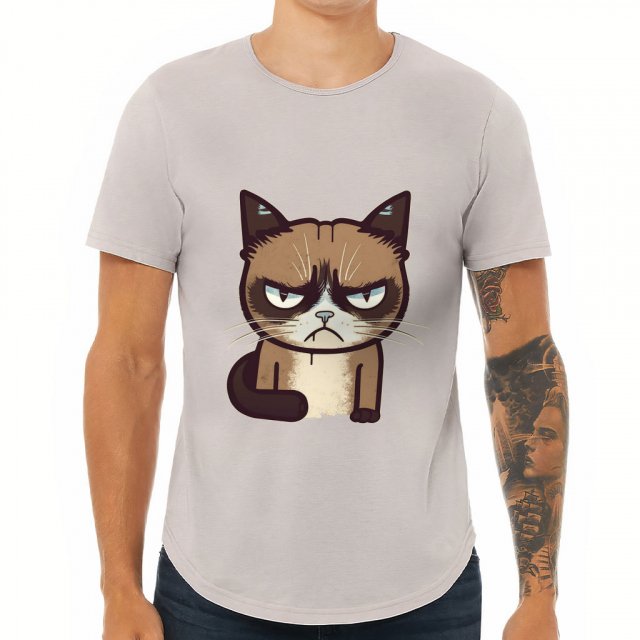 Angry Cat Curved Hem T-Shirt is no ordinary piece of clothing. Its 3/8 neck binding, subtle