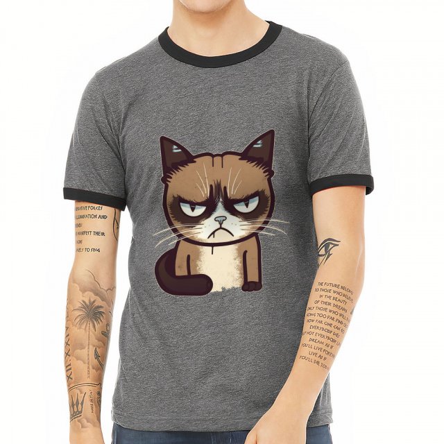 This trendy T-Shirt for men is made of a lightweight and soft cotton-poly blend, breathable and comfortable to wear. Angry Cat Ringer T-Shirt will give you an excellent wearing experience all day.