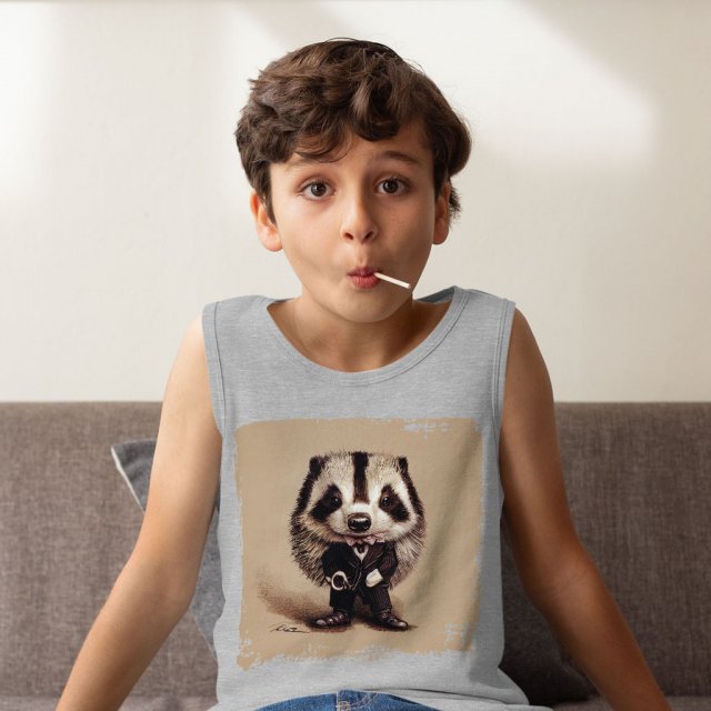Animal Design Kids’ Jersey Tank – Funny Badger Sleeveless T-Shirt – Suit Kids’ Tank Top