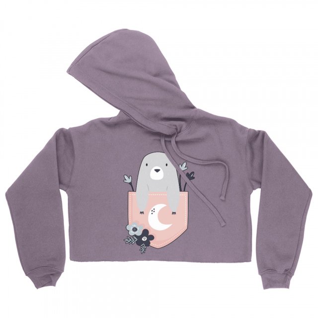 Animal in Pocket Women’s Cropped Fleece Hoodie – Seal Cropped Hoodie for Women – Graphic Hooded Sweatshirt