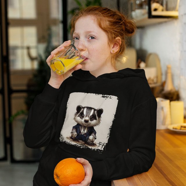 Animal Lover Kids’ Sponge Fleece Hoodie – Badger Design Kids’ Hoodie – Cool Hoodie for Kids