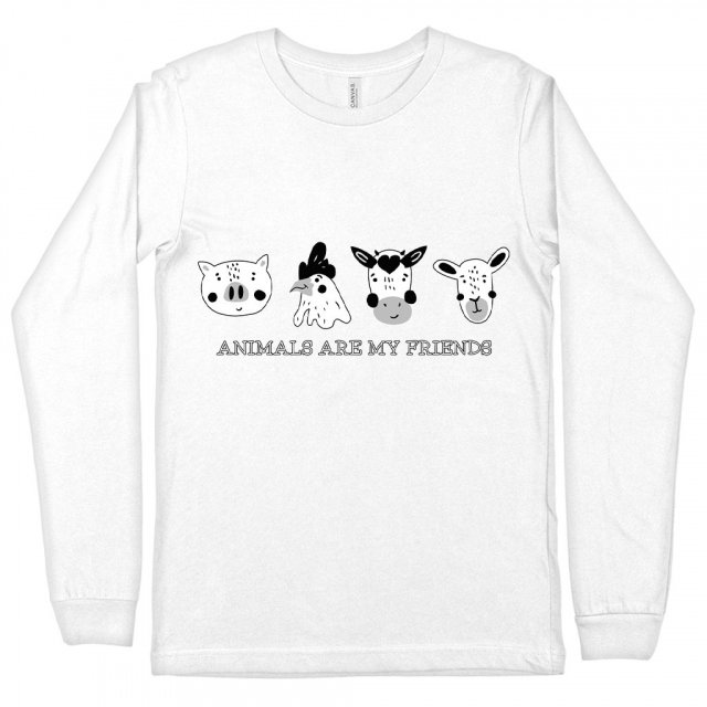 Animals Are My Friends Long Sleeve T-Shirt – Text Design T-Shirt – Animal Long Sleeve Tee Shirt