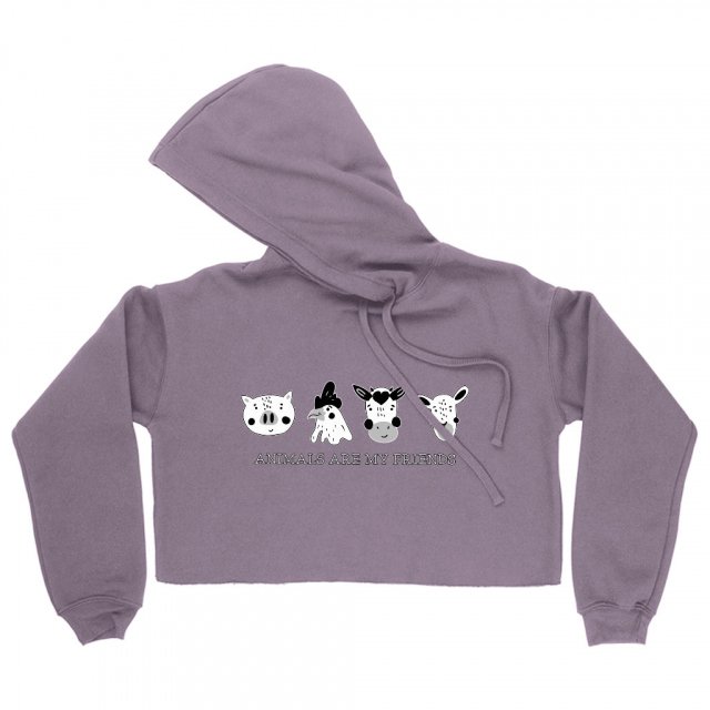 Animals Are My Friends Women’s Cropped Fleece Hoodie – Text Design Cropped Hoodie for Women – Animal Hooded Sweatshirt