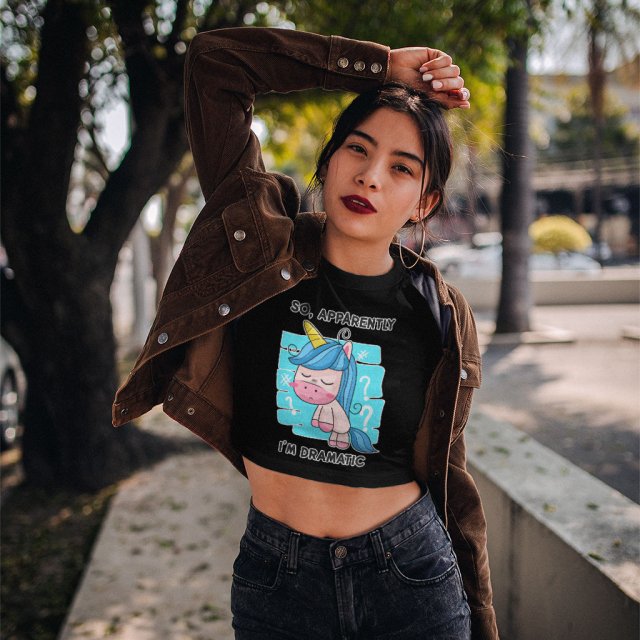 Apparently I’m Dramatic Women’s Cropped T-Shirt – Unicorn Crop Top – Cute Crop Tee Shirt