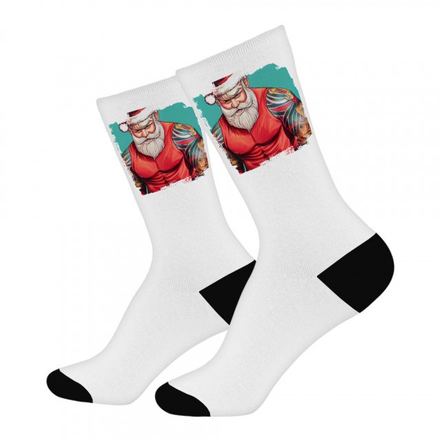 Badass Santa Socks – Christmas Novelty Socks – Graphic Crew Socks