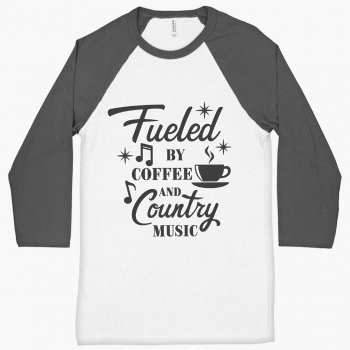 Fueled By Coffee And Country Music Baseball T-Shirt – Quotes T-Shirt – Cool Tee Shirt