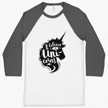 I Believe In Unicorns Baseball T-Shirt – Silhouette T-Shirt – Magic Tee Shirt