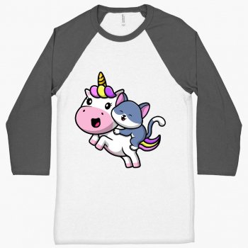 Cat Riding a Unicorn Baseball T-Shirt – Cute Design T-Shirt – Cartoon Tee Shirt