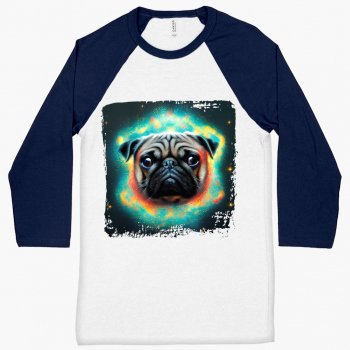 Pug in Space Baseball T-Shirt – Funny T-Shirt – Galaxy Tee Shirt