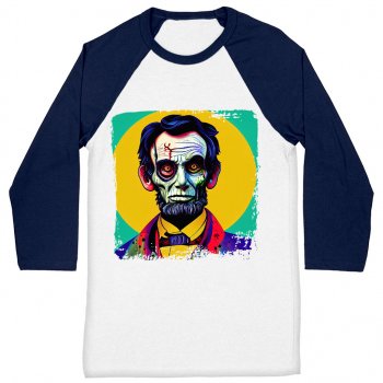 Pop Art Print Baseball T-Shirt – Abraham Lincoln T-Shirt – Funny Zombie Tee Shirt