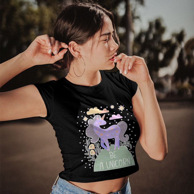 Be A Unicorn Women’s Cropped T-Shirt – Inspirational Crop Top – Cute Graphic Crop Tee Shirt