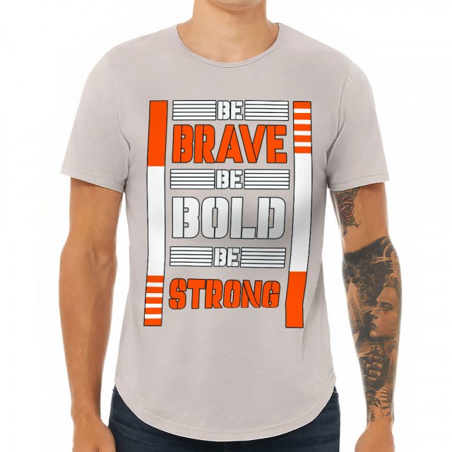 Be Brave Be Bold Be Strong Curved Hem T-Shirt is no ordinary piece of clothing. Its 3/8 neck binding, subtle