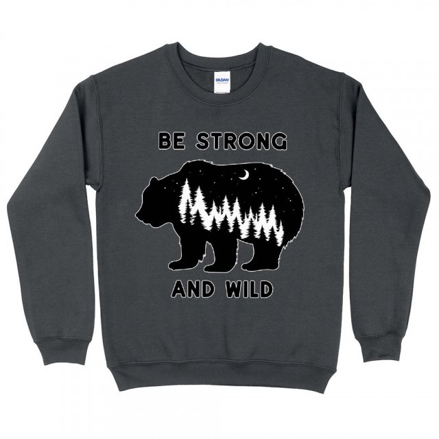 Be Strong And Wild Sweatshirt – Bear Crewneck Sweatshirt – Text Design Sweatshirt
