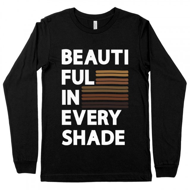 Beautiful In Every Shade Long Sleeve T-Shirt – Black Beauty T-Shirt – Text Design Long Sleeve Tee Shirt