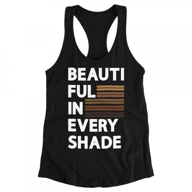 Beautiful In Every Shade Racerback Tank – Black Beauty Tank – Text Design Workout Tank