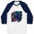 features raglan 3/4 sleeves and a modern fit that is perfect for a day