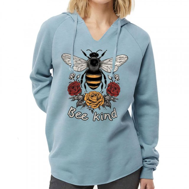 Cotton blend fabric is super soft and comfortable to wear. Bee Kind California Wave Wash Hoodie is light and airy with soft-to-the-touch fabric, made of cotton and polyester. It is also skin-friendly, very stretchy and comfortable, that feels as good as it looks.