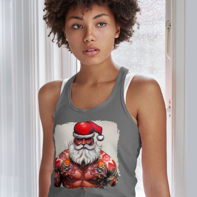 Biker Santa Racerback Tank – Badass Santa Tank – Art Print Workout Tank