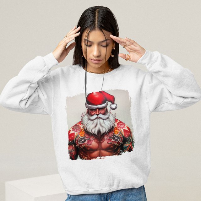 Biker Santa Sweatshirt – Badass Santa Crewneck Sweatshirt – Art Print Sweatshirt