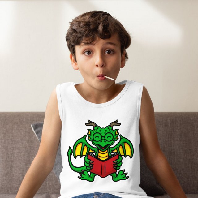Book Dinosaur Kids’ Jersey Tank – Book Themed Sleeveless T-Shirt – Cute Kawaii Kids’ Tank Top