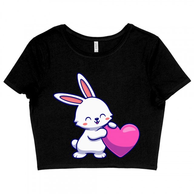 Bunny Love Women’s Cropped T-Shirt – Cute Crop Top – Graphic Crop Tee Shirt