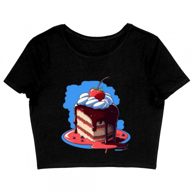 Cake Graphic Women’s Cropped T-Shirt – Art Print Crop Top – Unique Cropped Tee