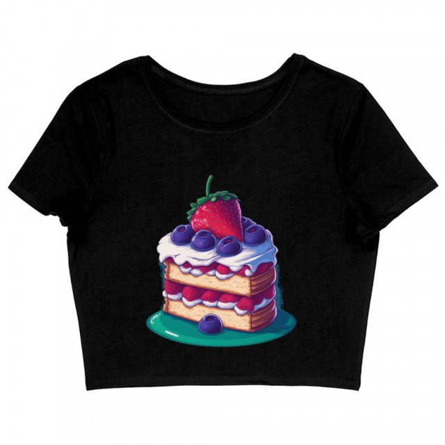 Cake Print Women’s Cropped T-Shirt – Bright Crop Top – Graphic Cropped Tee