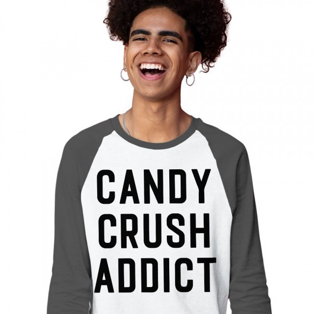 Candy Crush Addict Baseball T-Shirt – Text Design T-Shirt – Funny Tee Shirt