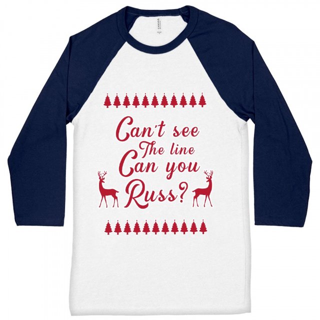 Can’t See The Line Can You Russ Baseball T-Shirt – Text Design T-Shirt – Funny Tee Shirt
