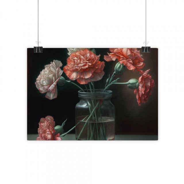 Carnation Gloss Horizontal Poster – Botanical Art Print – Realistic Wall Poster