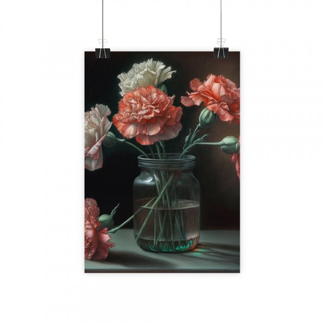 Carnation Gloss Vertical Poster – Botanical Art Print – Realistic Wall Poster