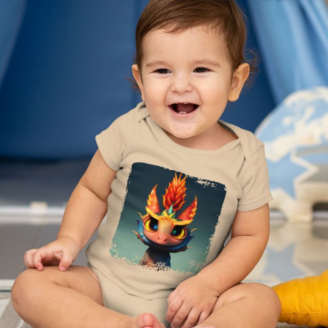 Cartoon Dragon Baby Jersey Onesie – Artwork Baby Onesie – Fire Dragon Baby One-Piece