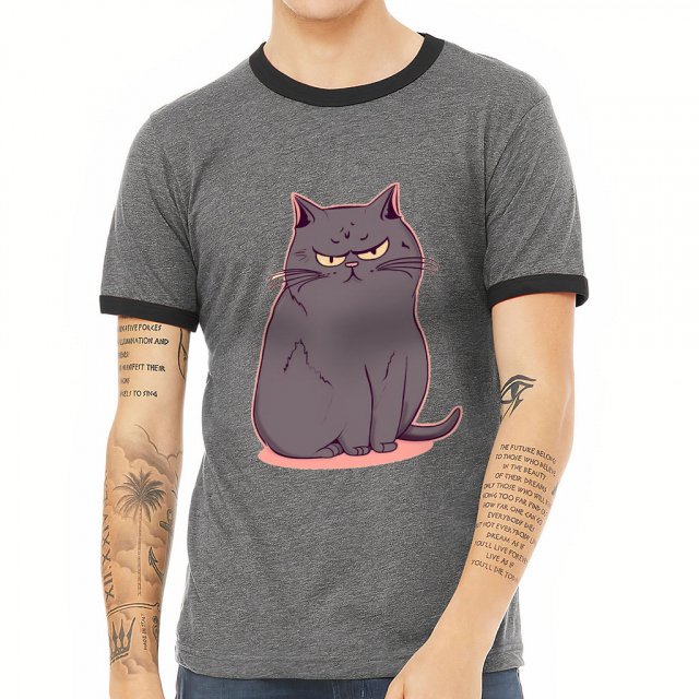 Cat Graphic Ringer T-Shirt – Unique T-Shirt – Print Ringer Tee