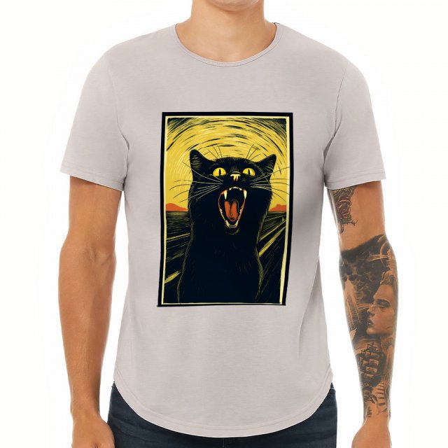 Cat Illustration Curved Hem T-Shirt – Print T-Shirt – Illustration Curved Hem Tee
