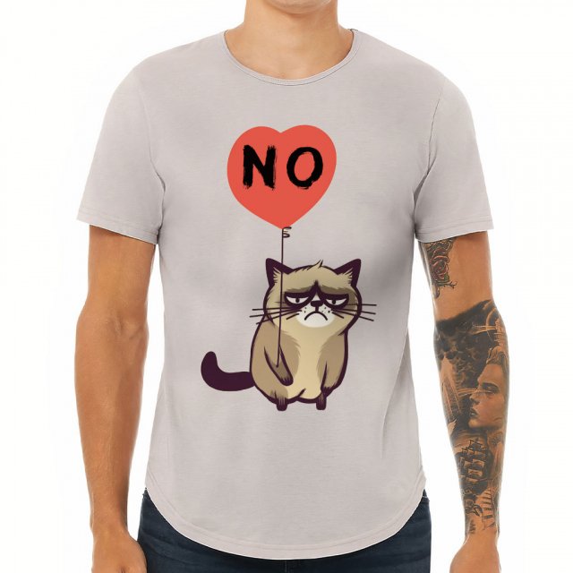 Cat No Curved Hem T-Shirt – Heart T-Shirt – Art Print Curved Hem Tee