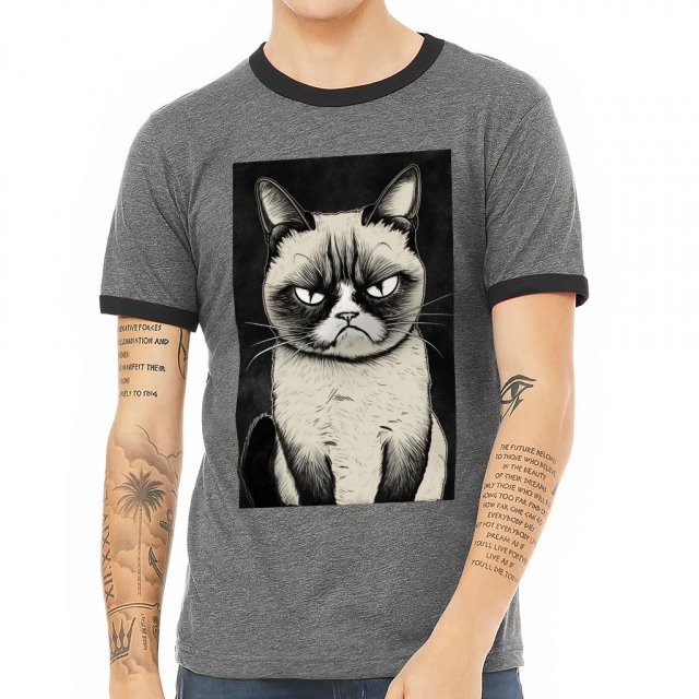 Cat Print Ringer T-Shirt – Animal Art T-Shirt – Unique Ringer Tee