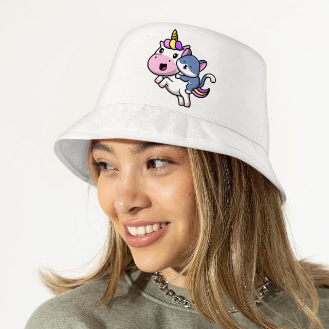 Cat Riding a Unicorn Bucket Hat – Cute Design Hat – Cartoon Bucket Hat