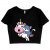 Cat Riding a Unicorn Women’s Cropped T-Shirt – Cute Design Crop Top – Cartoon Crop Tee Shirt