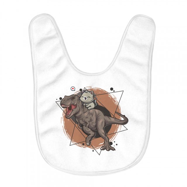 Cat Riding T Rex Baby Bibs – Kawaii Baby Feeding Bibs – Cool Design Bibs for Eating