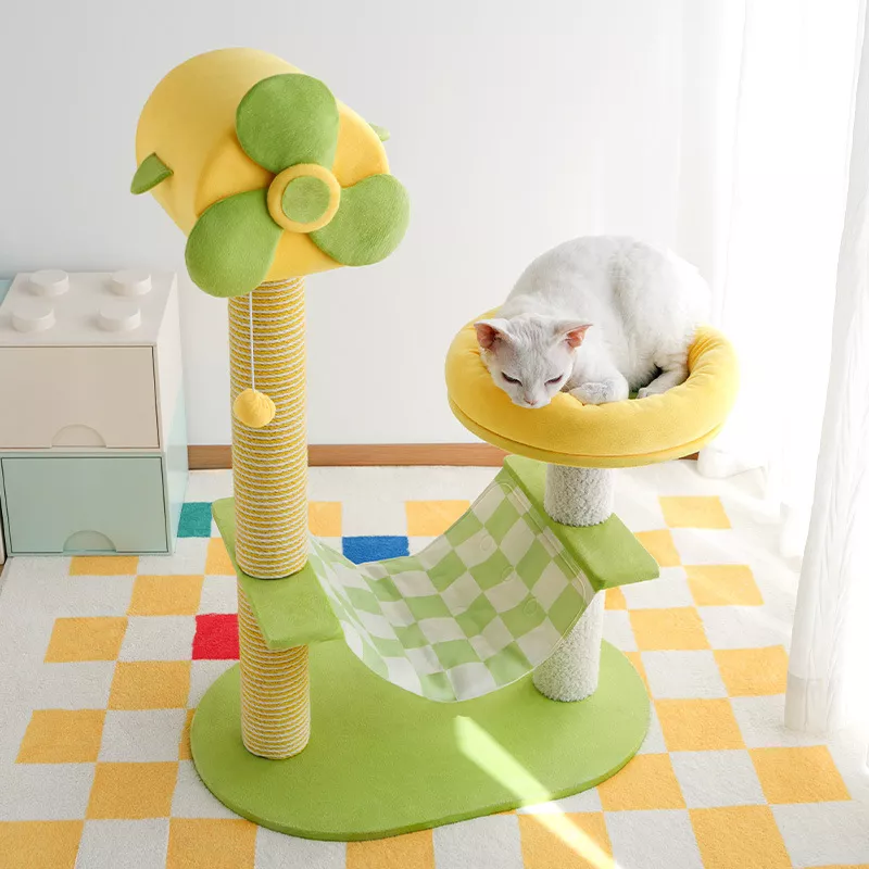 Turn your living space into a feline playground with our beautifully designed Cat Tree Cat Climbing Frame! Standing at an impressive 31.5 inches, this charming piece features a delightful pinwheel shape that will capture the attention of your cat while adding a modern touch to your home decor. With a vibrant yellow-green color scheme, it seamlessly blends into any room while providing endless fun and comfort for your beloved pet.