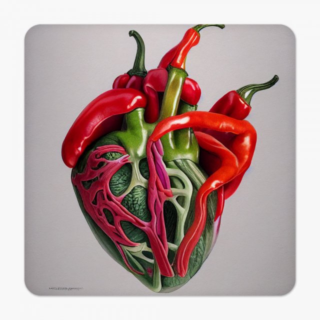 Chili Pepper Square Coasters – Heart Coaster – Art Coasters for Drinks